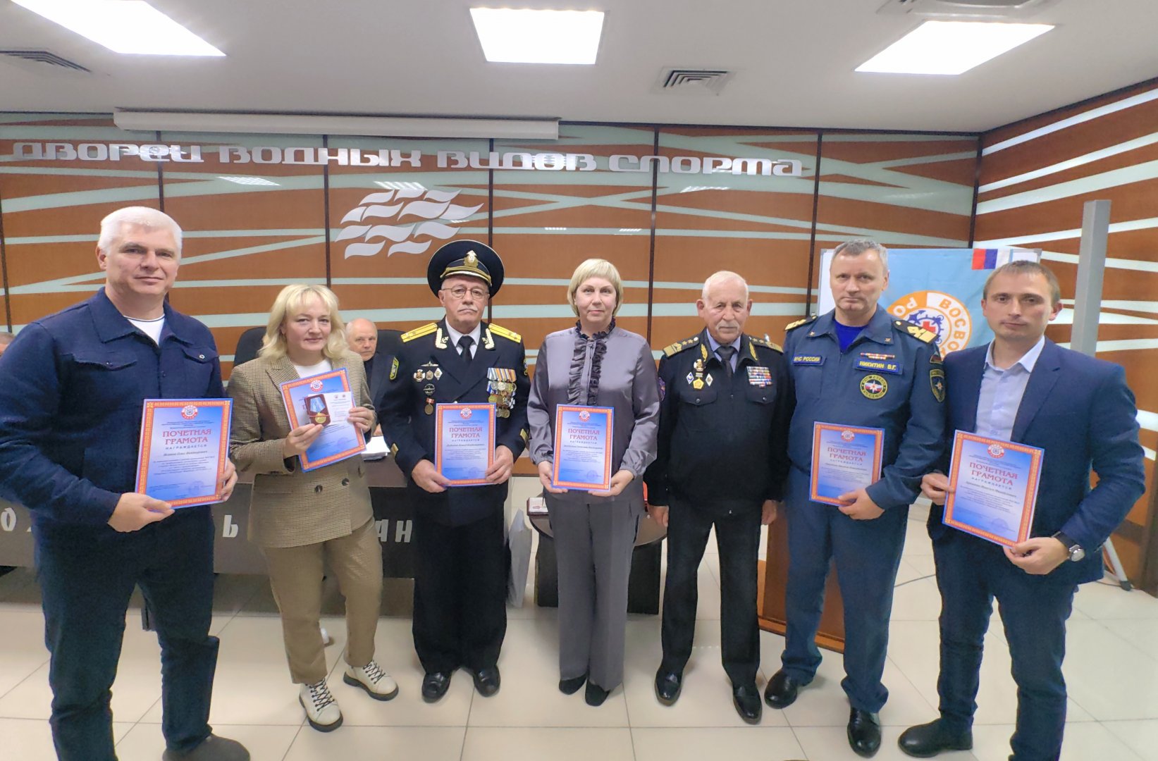 Как мы уже информировали, 10 октября в г. Саранске прошла внеочередная, XVll-я по счету, отчетно-выборная Конференция Мордовского регионального отделения Всероссийского общества спасания на водах (ВОСВОД). Конференция проводилась соответствии с Решением Пленума Центрального Совета о проведении внеочередного Съезда Общества, который будет проходить в Московском регионе с 16 по 18 октября 2025 г. Как уже сообщалось, делегатами Съезда избраны: Председатель регионального отделения ВОСВОД – Евдокимов Валерий Павлович и консультант Министерства спорта Республики Мордовия – Дубровин Роман Борисович. Был также избран Совет региональной организации и Контрольно-ревизионная комиссия (КРК) После завершения Конференции состоялся Первый организационный Пленум регионального отделения, на котором был избран Президиум Совета, в количестве 9 человек, а также Председатель регионального отделения, Совета и его Президиума. В очередной раз Председателем был избран на новый, 5-летний срок, ныне действующий руководитель региональной организации Общества – Евдокимов Валерий Павлович. По завершению Пленума прошло награждение, наиболее отличившихся, активистов ВОСВОД. Депутат Государственного Собрания Республики Мордовия Екатеринин Сергей Павлович от имени Председателя Госсобрания Чибиркина Владимира Васильевича вручил награды Котлову Александру Петровичу – Председателю Рузаевского районного Совета и первичной организации ВОСВОД школы № 5 г. Рузаевки и Несмеяновой Марии Алексеевне –Председателю первичной организации ВОСВОД гимназии № 12 г. Саранска. Затем, Евдокимов В.П. вручил большой группе активистов Общества «Почетные Грамоты» от Центрального Совета и Мордовского регионального отделения Общества. Он также, от имени Председатель ЦС ВОСВОД генерал-полковника Нелезина Петра Васильевича вручил памятную медаль «За спасение погибавших на море» - Дубровину Роману Борисовичу, медаль «За мир и гуманизм» - Председателю регионального отделения Комитета Красного Креста – Антоновой Наталье Алексеевне, и погоны «Полковник ВОСВОД» - Первому Заместителю Председателя ВОСВОД Мордовии Круглову Николаю Ивановичу На фотографиях: вновь избранный Председатель ВОСВОД Мордовии и моменты церемонии награждения: 1. Евдокимов Валерий Павлович - Председатель Мордовского регионального отделения, член Президиума Центрального Совета, генерал-лейтенант ведомственной службы ВОСВОД, Заслуженный работник физической культуры Республики Мордовия. 2. Екатеринин С.П. и Котлов А.П. 3. Екатеринин С.П. и Несмеянова М.А. 4. Евдокимов В.П. и Дубровин Р.Б. 5. Евдокимов В.П. и Круглов Н.И. 6. Награждение «Почетными Грамотами» ЦС ВОСВОД. Слева направо: Екатеринин Сергей Павлович; Ляпин Евгений Алексеевич – Председатель Общественного Совета при ГУ МЧС РФ по РМ; Дугушкина Ж.В. – Председатель Ленинского райсовета ВОСВОД; Арсентьев Юрий Владимирович – Старший инструктор Дворца водных видов спорта г. Саранска; Видяскина Татьяна Алексеевна – Президент Федерации подводного спорта РМ; Романов Александр Викторович – инспектор Центра ГИМС ГУ МЧС РФ по Республике Мордовия; Сюбаев Шамиль Ибрагимович – старейший ветеран ВОСВОД РМ. 7. Награждение «Почетными Грамотами» ВОСВОД Мордовии. 8. Еще награждение. 9. И еще награждение. Примечание: со многими из активистов ВОСВОД Мордовии Пред