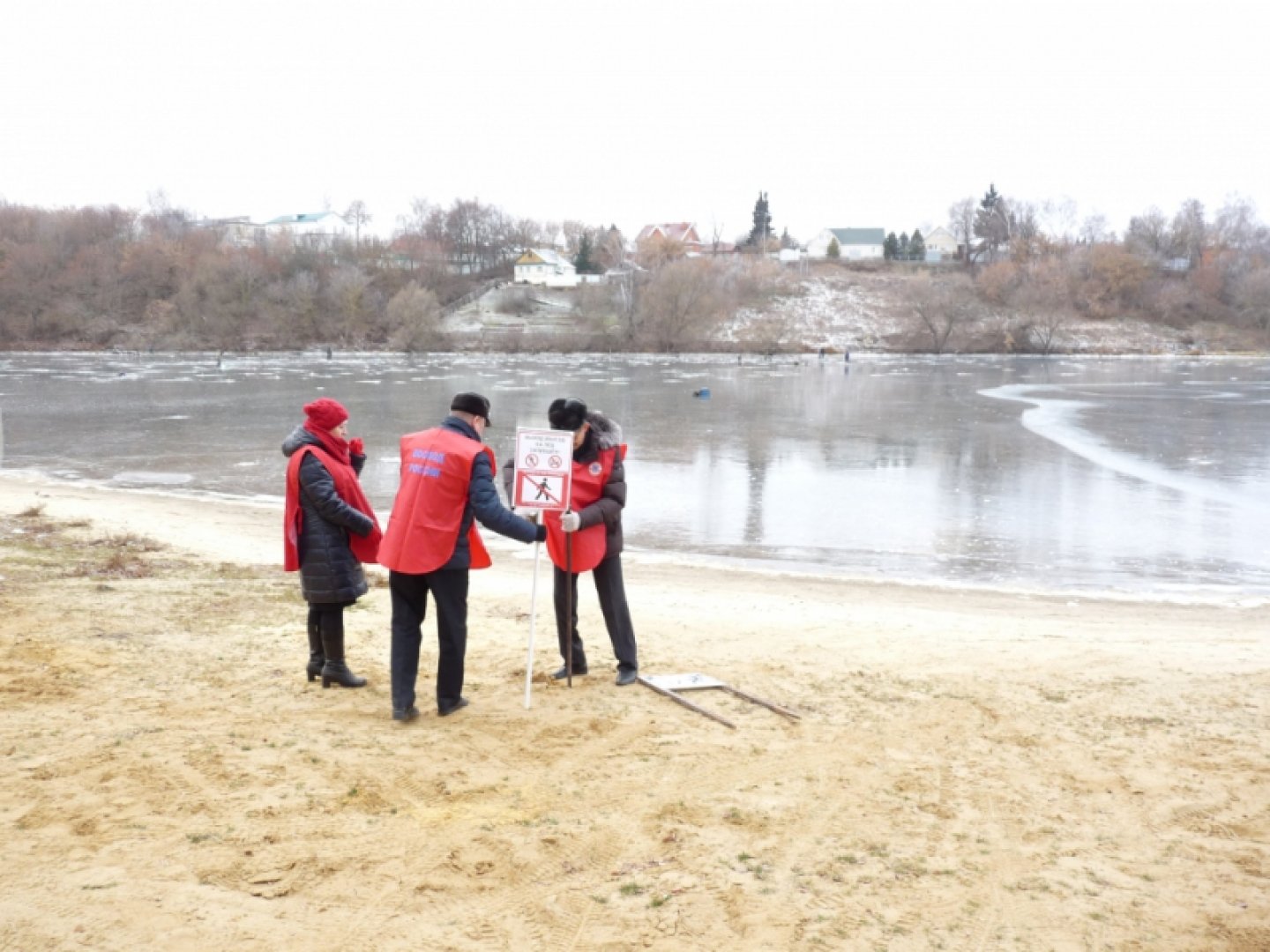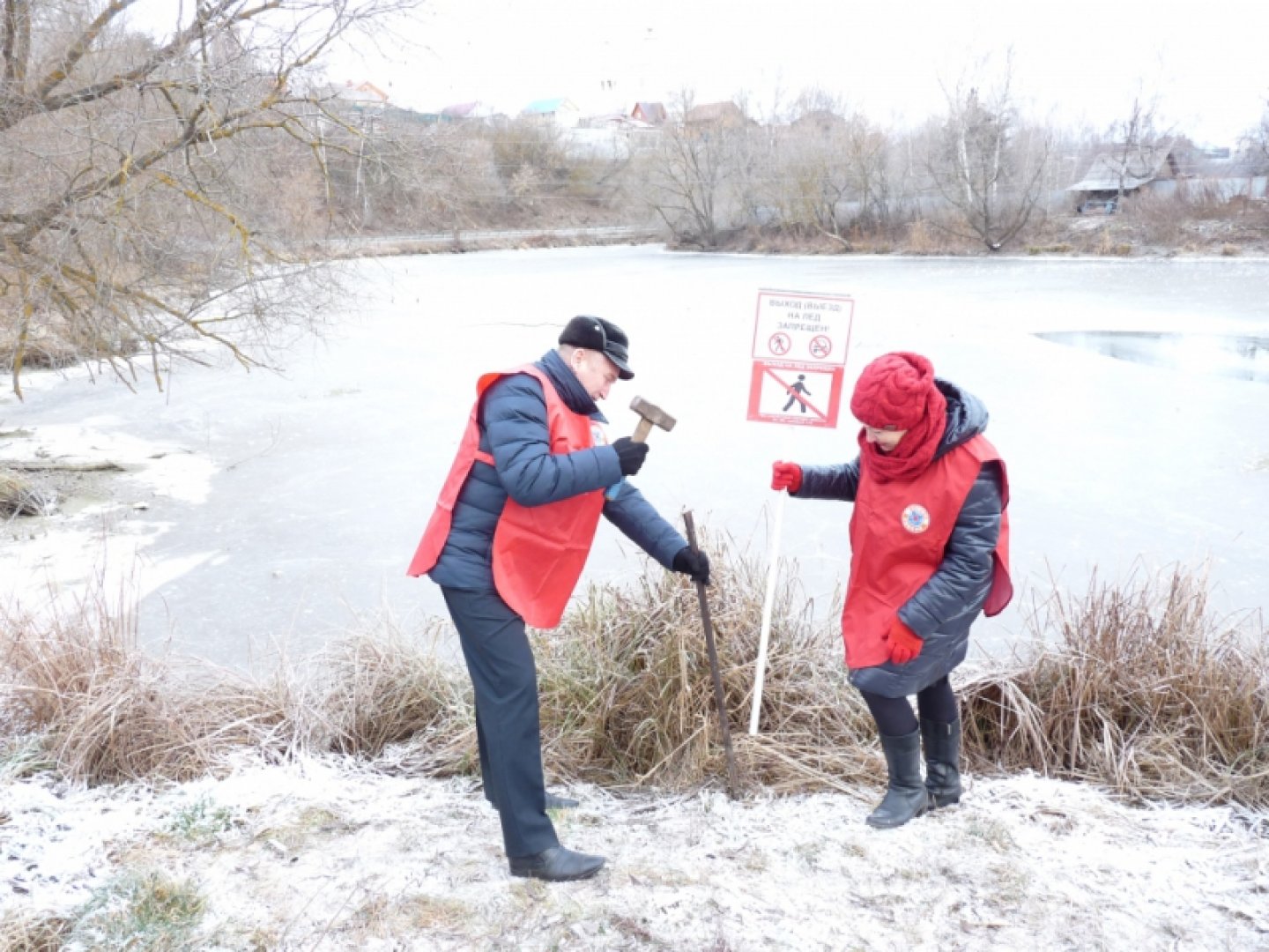 На водоемах тульского региона выставляются аншлаги, запрещающие выход на лед, замеряется толщина льда, Область Тульская