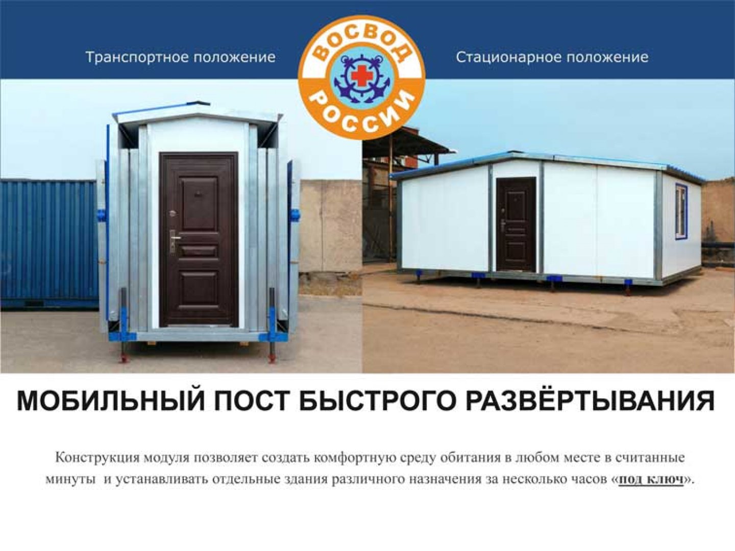 Предприятие "ВОСВОД-Н", являющееся разработчиком и производителем модулей Мобильных Постов Быстрого Развёртывания, является одним из дочерних предприятий Всероссийского Общества Спасания на Водах (ВОСВОД России).
