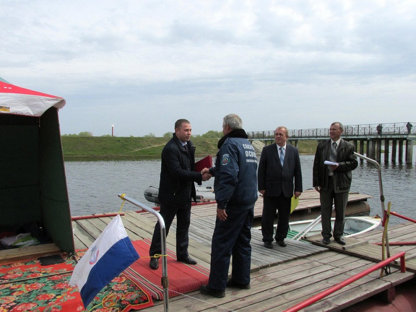 В рамках праздника заместитель председателя райисполкома Виталий Судаков вручил Почетную грамоту районного Совета депутатов за активную профилактическую работу по предупреждению несчастных случаев на водах старшему мотористу-рулевому спасательной станции Геннадию Сакиру и Благодарность районного исполнительного комитета за многолетний добросовестный труд Олегу Гериловичу.