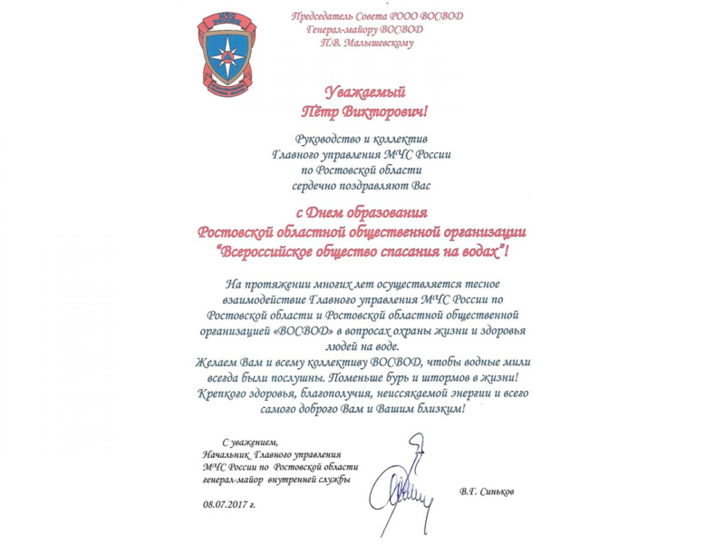 Старейшей общественной и спасательной организации Дона –Ростовской областной организации
