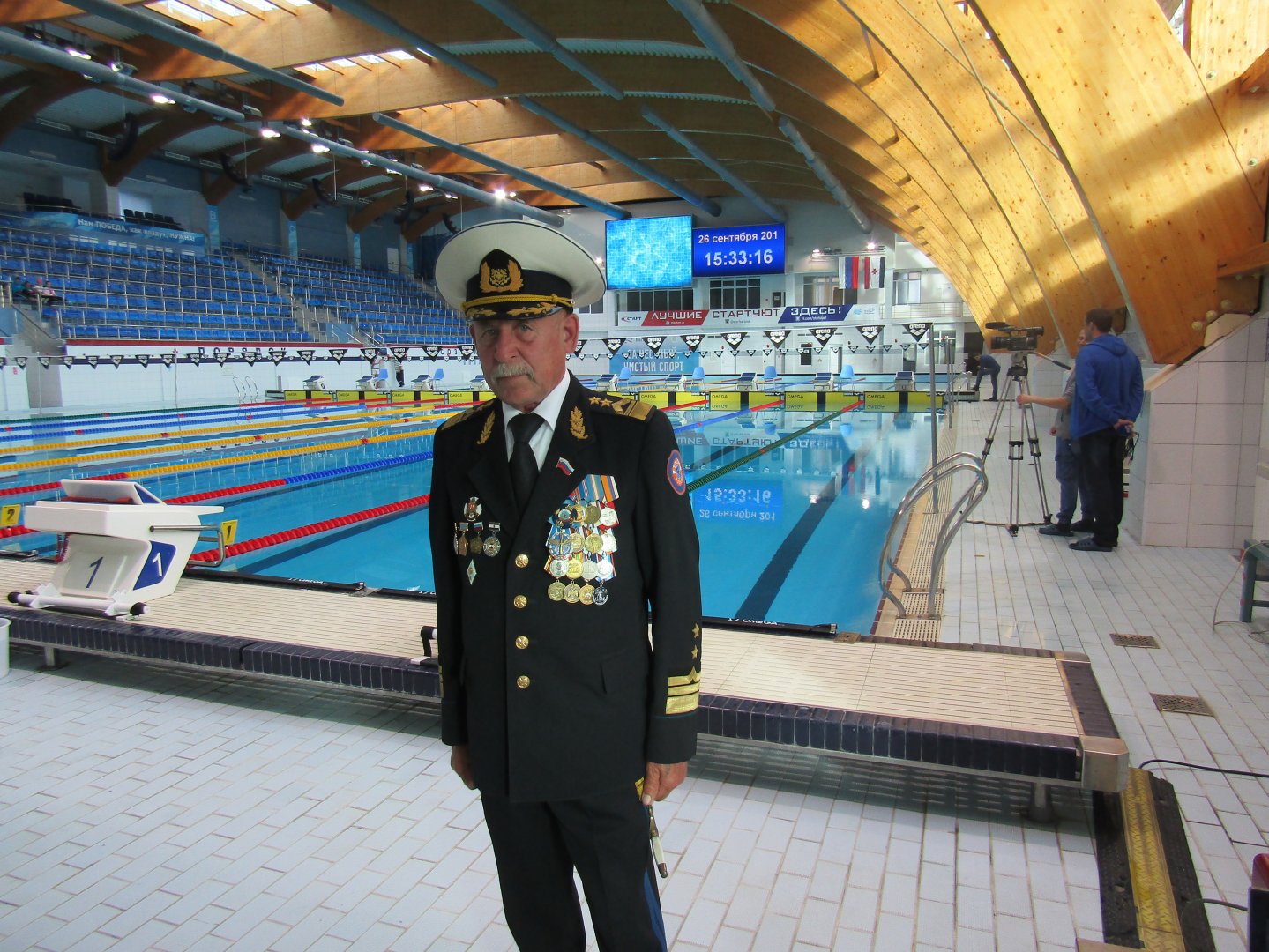 ВОСВОД Мордовии. Евдокимов В.П. принял участие в открытии чемпионата и первенства республики по плаванию. 26.09.2018 г. 26 сентября 2018 года в 50-метровом плавательном бассейне Дворца водных видов спорта (ДВВС) в г. Саранске состоялось торжественное открытие очередного чемпионата и первенства Республики Мордовия по плаванию на «короткой воде», т.е. в 25-метровом бассейне (50-метровый бассейн легко трансформируется в 25-метровый). В церемонии открытия принял участие Председатель Мордовского регионального отделения Всероссийского общества спасания на водах (ВОСВОД) Евдокимов Валерий Павлович, который поздравил участников, организаторов, судей и зрителей, пожелал участникам удачных стартов, победных финишей и объявил чемпионат и первенство Республики Мордовия открытыми! Чемпионат и первенство продлятся три дня (26-28 сентября). В соревнованиях принимают участие все сильнейшие пловцы республики. Необходимо отметить, что многие из стартующих здесь спортсменов – школьников примут участие в очередных соревнованиях по плаванию, в программе водно-спасательного многоборья, которые пройдут 29 сентября в 25-метровом бассейне гимназии № 23, среди общеобразовательных учреждений города. Соревнования, организуемые Мордовским региональным отделением ВОСВОД, совместно с Управлением образования и Управлением по развитию физической культуры, спортивной инфраструктуры и молодежной политике Администрации городского округа Саранск, посвящаются Дню учителя и очередной 146-й годовщине Всероссийского Общества спасания на водах. Подробно об этих мероприятиях – в следующих информациях. На фотографии: Евдокимов В.П. в плавательном бассейне ДВВС. Пресс-служба Мордовского регионального отделения ВОСВОД