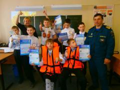 Вместе с инструктором школьники разгадали тематический кроссворд, посмотрели несколько обучающих мультфильмов, провели занятия по правилам обращения со спасательными жилетом и оказанию помощи утопающему.