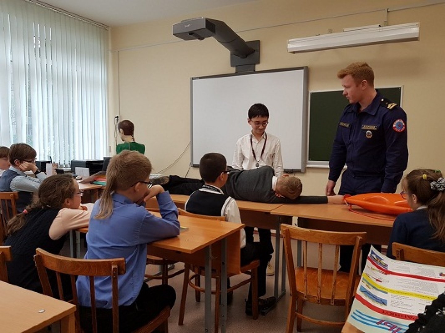 Надеемся, что школьники хорошо запомнили этот урок и теперь смогут, если надо, грамотно помочь пострадавшему. Напоминать об интересной встрече будет и коллективная памятная фотография.