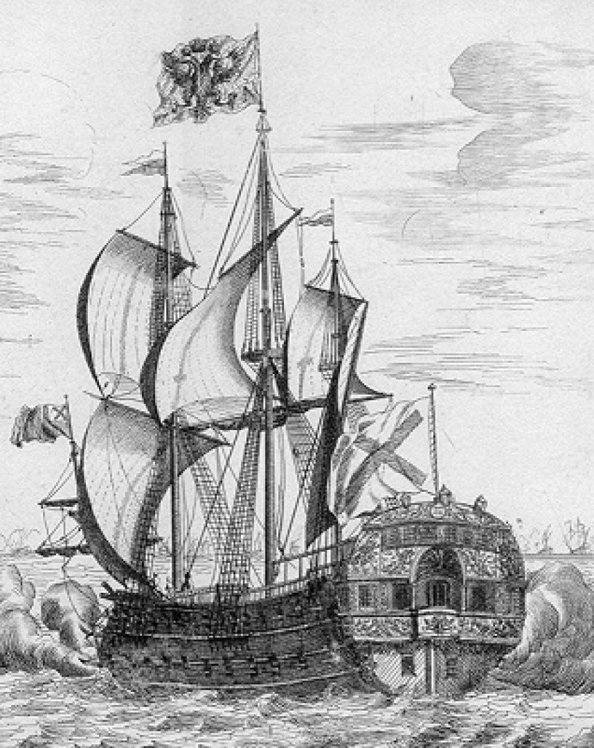 Питер Пикарт. Линейный корабль «Полтава». Куншты корабельные. Гравюра. 1717