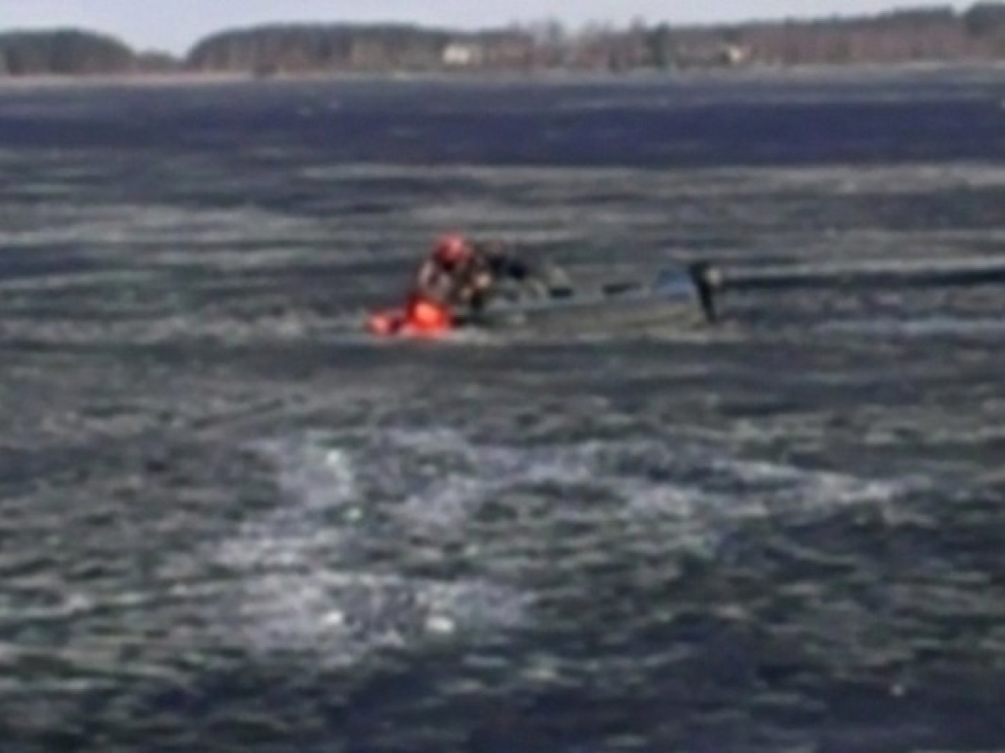 Сначала спасатели, немедленно прибывшие на место, пытались подобраться к мужчине по льду, надев гидрокостюмы. Но лед был тонким и хрупким, и только крошился, делая полынью все больше.