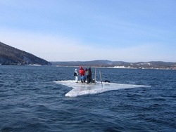 В субботу в районную диспетчерскую поступило сообщение о том, что трое человек находятся на льдине в 1,5 км от берега поселка Нижний-Бестях.