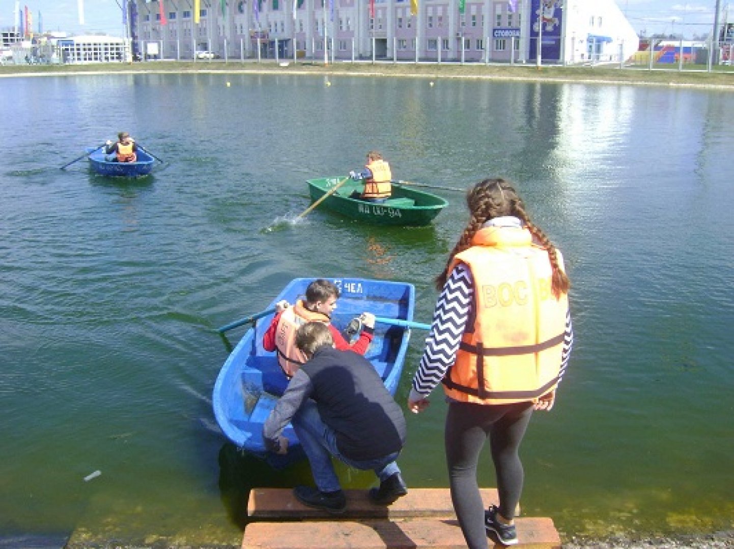 На фотографии: тренировка по гребле на водоеме стадиона «Старт»