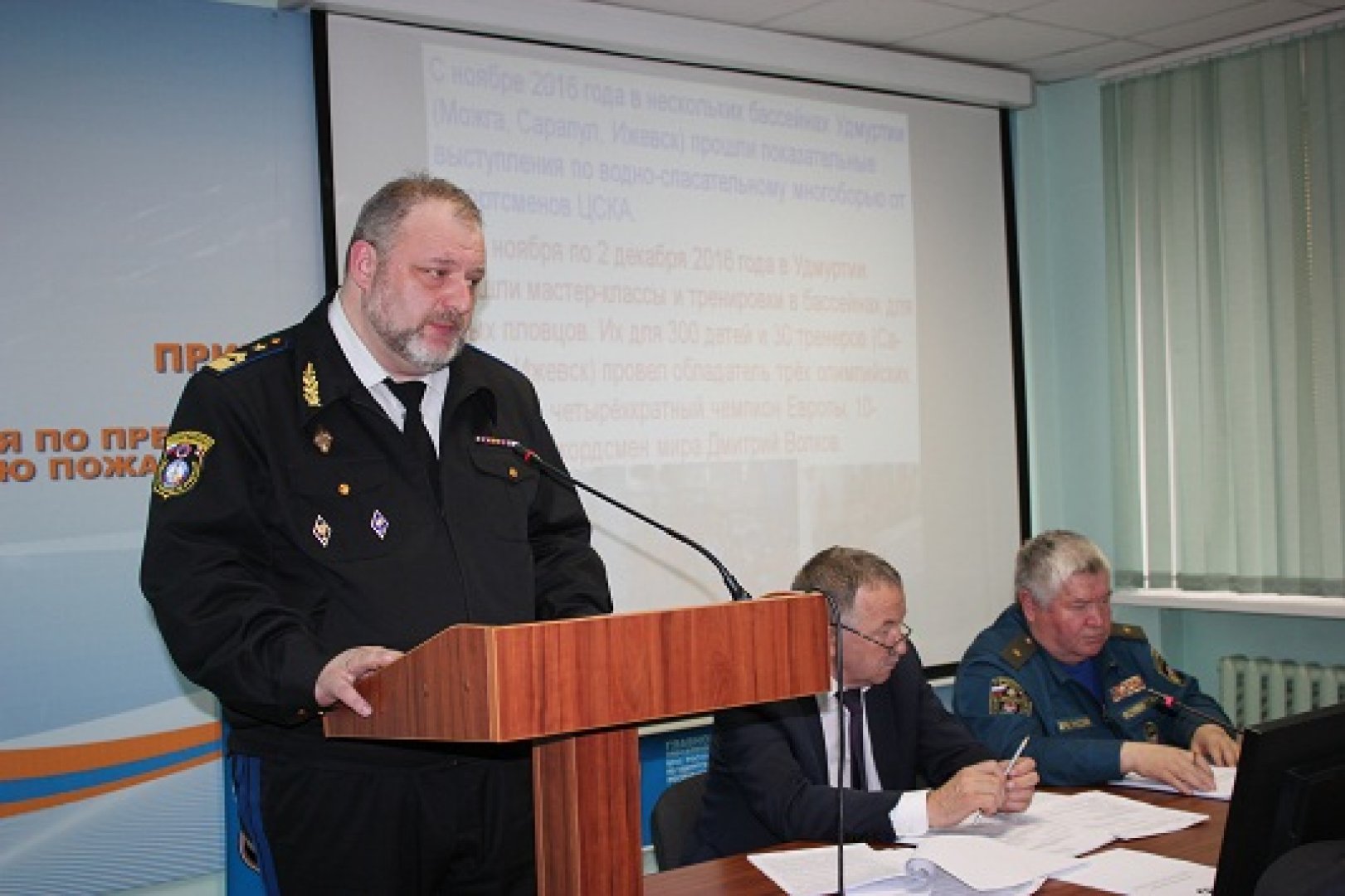 В рамках заседания об обеспечение безопасности людей на водных объектах Удмуртской Республики зимний период 2016-2017 и в летний период 2017 года выступил Председатель ЦС ВОСВОЛ Удмуртии Черников Владимир. Он рассказал о работе восводовцев Удмуртии в зимний период, о проблемах на предстоящий летний период, о необходимости изменений в нормативно-правовой базе Удмуртии в области безопасности на воде.