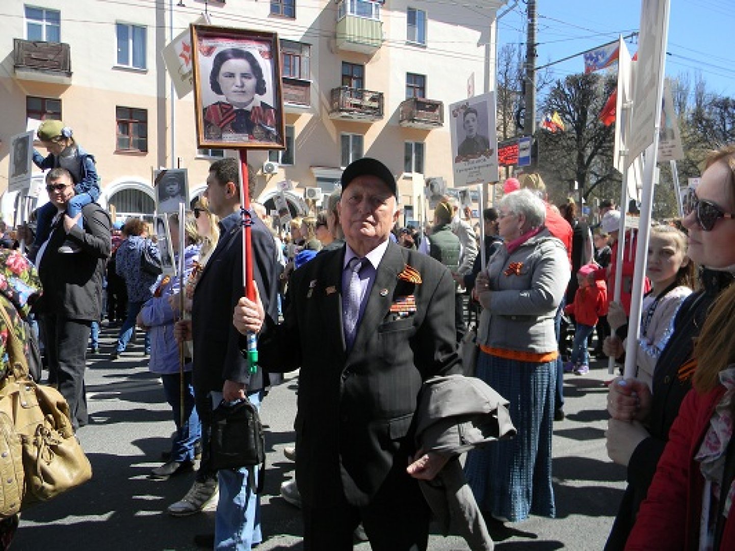 Даже во время движения этого полка, когда к нему подошли корреспонденты с телевидения, успел в краткой форме он дать интервью, чей портрет он несет на этом мероприятии и пожелать всем жителям г. Чебоксары счастья и мирного неба.