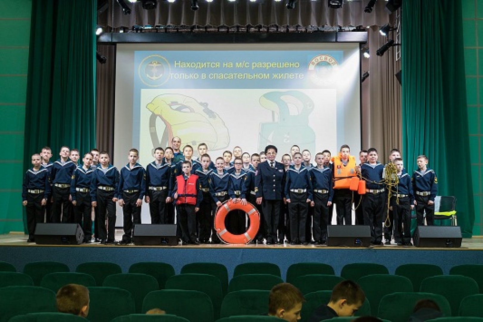 В актовом зале присутствовало 240 курсантов и преподавателей училища. Оборудовали показ спасательных средств.