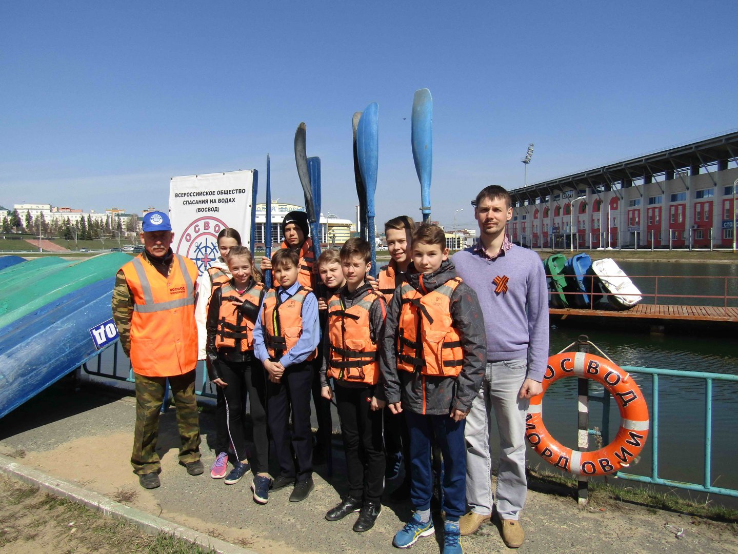 Как мы уже сообщали, лед на водоеме у стадиона «Старт» в г. Саранске, где работает пункт практической подготовки специалистов спасательного дела на воде Мордовского регионального отделения Всероссийского общества спасания на водах (ВОСВОД), в этом году растаял на целых 10 дней раньше, чем обычно. Поэтому, раньше, чем обычно начались учебно-тренировочные занятия среди команд юных восводовцев общеобразовательных учреждений города. В нынешнем году первыми к учебно-тренировочным занятиям на воде приступили учащиеся школы № 22. Команда этой школы, под руководством преподавателя курса «ОБЖ», председателя первичной организации ВОСВОД, члена Мордовского республиканского Совета Общества Дениса Александрова в последние годы выступает на всех соревнованиях, проводимых ВОСВОДом, стабильно, и члены этой команды выступают неплохо во всех видах программы (гребля на лодках, плавание, подача спасательного конца Александрова на дальность и точность и т.д.) Кроме практических занятий на воде, школьники знакомятся с правилами поведения на воде, правилами безопасного купания, размещенными на различных стендах ВОСВОД, которых на водоеме и пляже несколько. По традиции, перед первой тренировкой каждой команды, Председатель Мордовского регионального отделения ВОСВОД Евдокимов Валерий Павлович знакомится со школьниками, и разъясняет им правила поведения во время тренировок на воде, правила пользования лодками, спасательными жилетами, «Концами Александрова» и т. д. И затем уже школьники приступают к тренировкам под руководством преподавателя курса «ОБЖ» Учебно-тренировочные занятия проходят, как мы уже сообщали – по графику. На сегодняшний день заявились для участия в учебно-тренировочных занятиях команды 24 школ города. Поэтому, впереди у ВОСВОДа почти месяц напряженной ежедневной работы! На фотографии: Евдокимов В.П. с командой школы № 22 перед тренировкой. Крайний справа на фотографии – Денис Александров. Пресс-служба Мордовского регионального отделения ВОСВОД