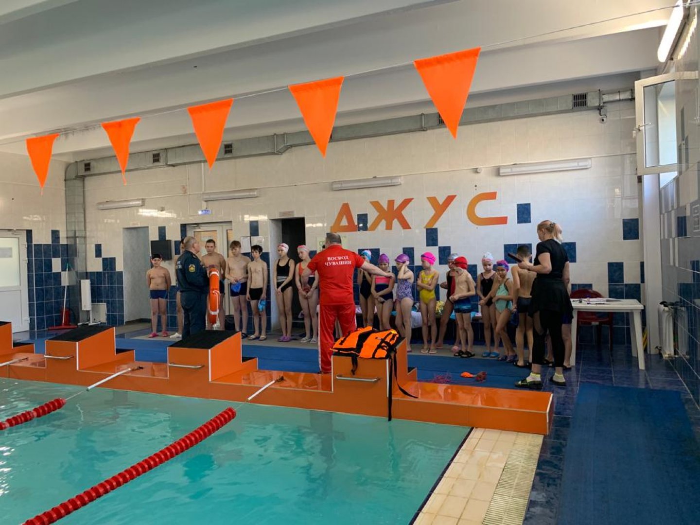 Специалисты Чувашского республиканского отделения общественной организации «Всероссийское общество спасания на водах» и инспектора Центра ГИМС Главного управления МЧС России по Чувашской Республики провели практические занятия с учащимися СОШ 12 г. Чебоксары в бассейне фитнесс клуба «ДЖУС». В конце апреля запланировано проведение соревнования по водно-спасательному многоборью на закрытой воде среди учащихся СОШ 12 г. Чебоксары. Специалисты ВОСВОД и ГИМС еще раз показали оборудование и средства спасения используемое при проведении соревнований по водно-спасательному многоборью. Были рассмотрены допущенные ошибки при выполнении дисциплин и озвучены штрафные баллы за эти ошибки. Все мероприятия и соревнования ВОСВОД Чувашии на территории республики приурочены к 150 - летию ВОСВОД России.