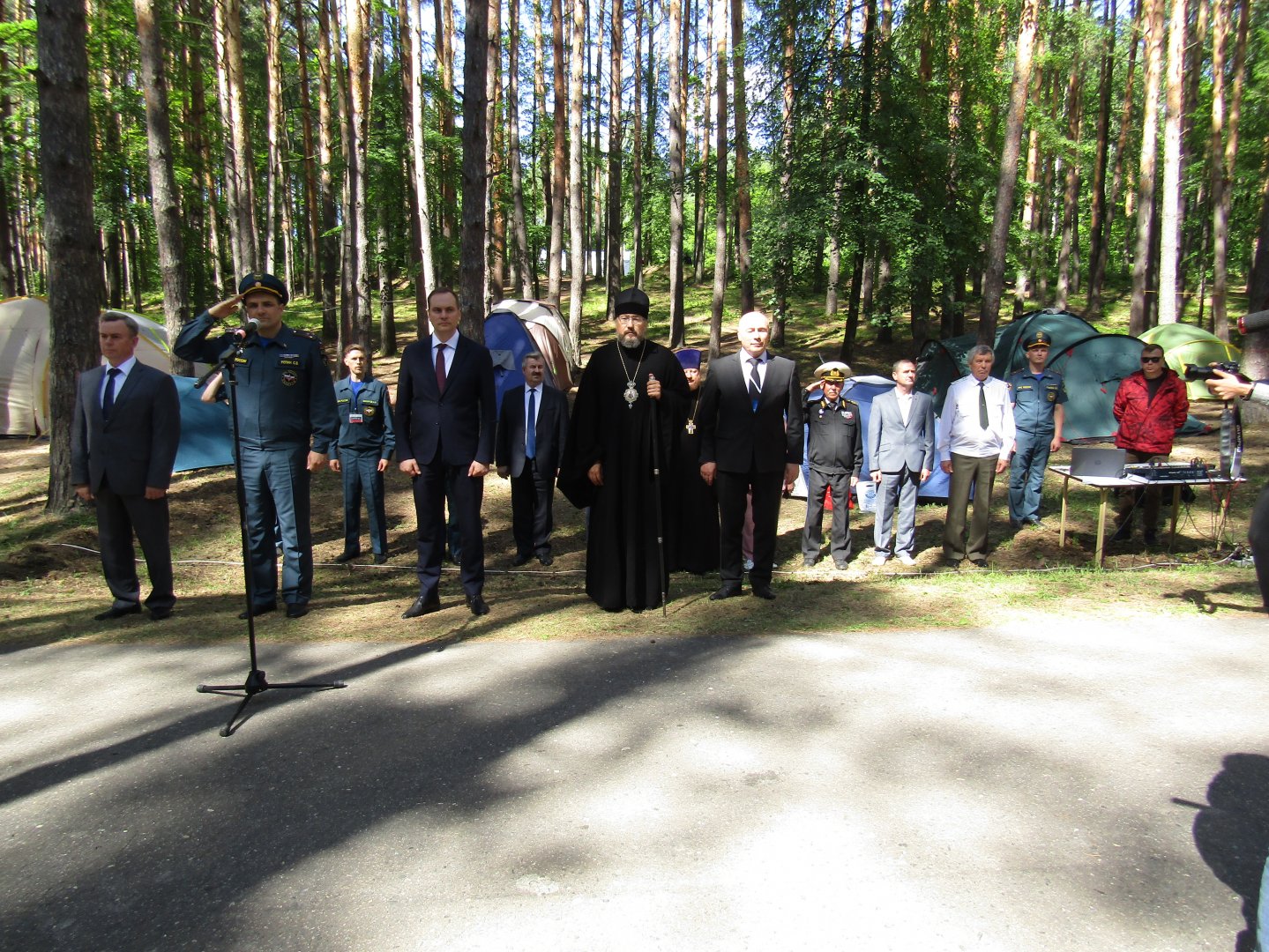 28 июня 2022 г. в учебном городке МЧС РФ по Республике Мордовия, расположенном в живописном лесном массиве Больше-Березниковского муниципального района Республики Мордовия, состоялось торжественное открытие очередных межрегиональных соревнований «Школа безопасности», для участия в которых прибыли команды юных спасателей из всех 14 регионов Приволжского федерального округа. В церемонии торжественного открытия соревнований принял участие Глава Республики Мордовия Здунов Артем Алексеевич, а также почетные гости, в числе которых – Председатель Мордовского регионального отделения, член Центрального Совета Общероссийской общественной организации «Всероссийское общество спасания на водах» (ВОСВОД) Евдокимов Валерий Павлович. О ходе данных соревнований, и об их итогах мы сообщим в следующих информациях. На фотографии: открытие соревнований. Третий слева – Здунов А.А. Звучит гимн России. Пресс-служба Мордовского регионального отделения ВОСВОД