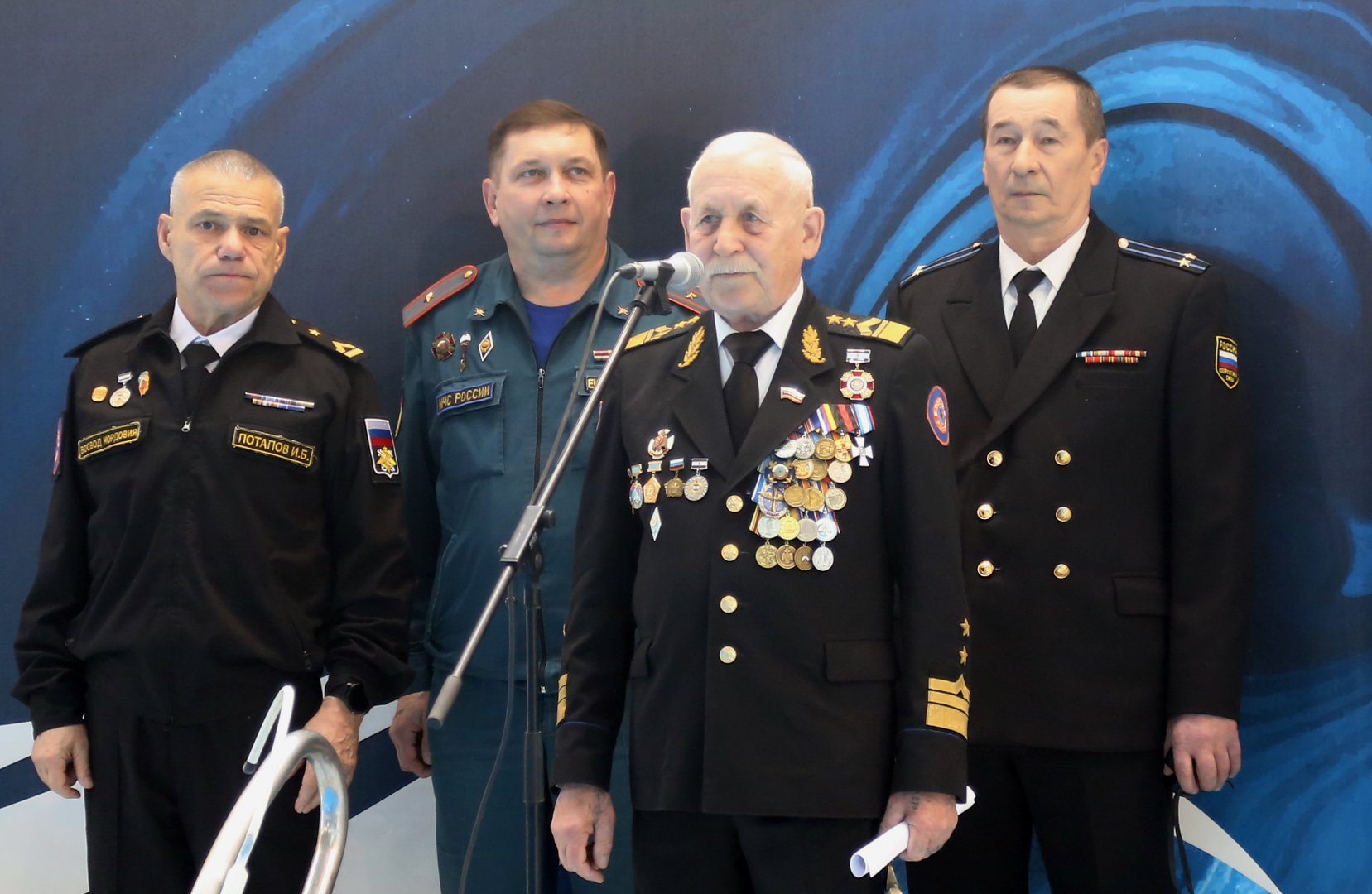 24 февраля 2024 года состоялось открытие очередных соревнований подводников – чемпионат и первенство Республики Мордовии по акватлону (подводная борьба в ластах). На торжественном параде открытия соревнований, которые проходят в прыжковом бассейне Дворца водных видов спорта г. Саранска, присутствовали сразу четыре члена Президиума Совета Мордовского регионального отделения Всероссийского общества спасания на водах (ВОСВОД). Первым выступил депутат Государственного Собрания Республики Мордовия Екатеринин Сергей Павлович. За ним выступил инспектор Центра ГИМС ГУ МЧС РФ по Республике Мордовия, Зам. Председателя Президиума Совета ВОСВОД Мордовии Романов Александр Викторович, а затем – Председатель ВОСВОД Мордовии Евдокимов Валерий Павлович. Выступающие поздравили организаторов, участников, судей и зрителей, с прошедшим Днем защитника Отечества, а также с Днем рождения прославленного и непобедимого адмирала Российского флота Ф.Ф. Ушакова, который отмечается именно 24 февраля (13 февраля по ст. ст.). В своем выступлении Евдокимов В.П. отметил, что этот вид спорта (акватлон) наиболее полно соответствует целям и задачам ВОСВОД, в плане подготовки спортсменов-подводников к практическим действиям по оказанию помощи терпящему бедствие на воде человеку. Ведь одним из элементов акватлона является умение освобождаться от захватов противника под водой, что является залогом успешных действий при спасании потерпевшего, да и безопасности самого спасателя. Валерий Павлович отметил также, что 24 февраля, в День рождения Ф.Ф. Ушакова, отмечается еще одно знаковое событие – вторая годовщина начала специальной военной операции (СВО) России, что весьма символично! В завершение своего выступления Евдокимов В.П. озвучил текст Приказа Председателя Центрального Совета ВОСВОД генерал-полковника Нелезина Петра Васильевича о присвоении ведомственных специальных званий ВОСВОД: Романову А.В. – полковника, а Екатеринину С.П. – подполковника. Главным судьей соревнований является еще один Зам. Председателя Совета ВОСВОД Мордовии – Потапов Игорь Борисович, майор ВОСВОД. На фотографии, слева направо: Потапов И.Б., Екатеринин С.П., Евдокимов В.П. и Романов А.В. Пресс-служба Мордовского регионального отделения ВОСВОД