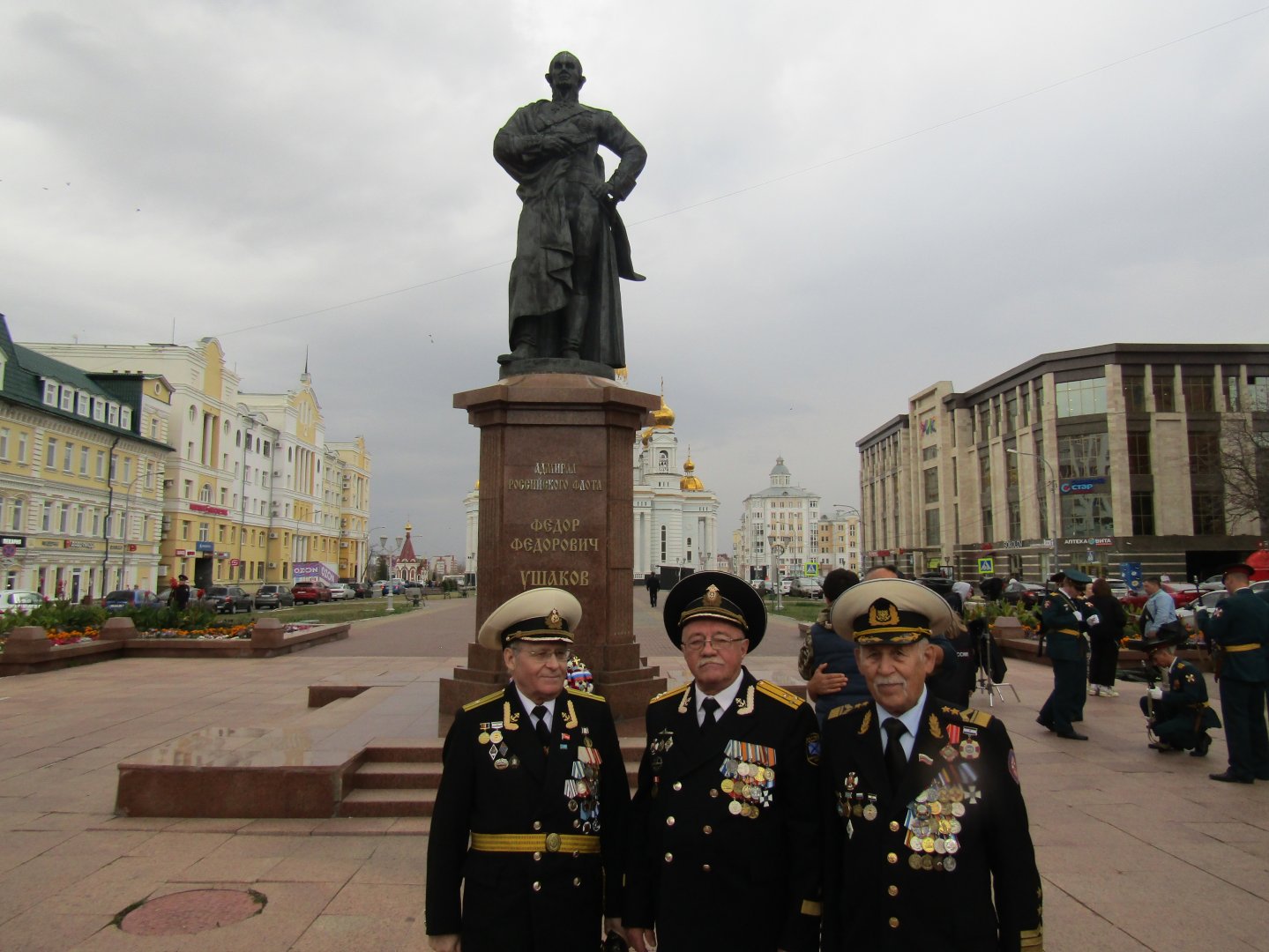В Республике Мордовия свято чтут память прославленного и непобедимого Адмирала Российского флота Федора Федоровича Ушакова, прах которого покоится у стен Санаксарского Рождество-Богородичного мужского монастыря в Темниковском районе республики, рядом с могилой его родного дяди, бывшего настоятеля этой обители Феодора Санаксарского. Приближается день памяти, ныне причисленного к лику святых Русской Православной Церкви, праведного воина Феодора Ушакова, окончившего свой земной путь 2 октября (15 октября по н. ст.) 1817 года в своем небольшом имении в деревне Алексеевка, в трех верстах от монастыря. 8 октября 2024 года в г. Саранске у памятника Ф.Ф. Ушакову, на соборной площади прошло знаковое событие – завершение съемки фильма, посвященного прославленному Адмиралу, действующими лицами которого стали несколько групп морских кадет и юнармейцев школ города, а также члены Совета Старшин Морского Собрания Республики Мордовия им. Ф.Ф. Ушакова. Фильм, под названием «Тайна Адмирала Ушакова», над созданием которого работала творческая группа из Москвы, выйдет на экраны уже в 2025 году, и первыми его увидят жители нашей республики. Съемки фильма начались еще летом – в Ярославской области, на родине Ф.Ф. Ушакова, затем в Темниковском районе Мордовии, где он прожил после отставки со службы, последние годы до своей кончины, и завершились в Саранске, у памятника Адмиралу, рядом с кафедральным собором в его честь. Следующее мероприятие, связанное с именем Ф.Ф. Ушакова – ежегодные традиционные соревнования по гребле на лодках, посвященные памяти прославленного Адмирала, и организуемые Управлением по развитию физической культуры, спортивной инфраструктуры и молодежной политике Администрации городского округа Саранск, Мордовским региональным отделением ВОСВОД, и при поддержке Центра ГИМС Главного управления МЧС РФ по Республике Мордовия, которые пройдут 12 октября на водоеме у стадиона «Старт в г. Саранске. На фотографиях: 1. Члены Совета Старшин Морского Собрания им. Ф.Ф. Ушакова. Слева направо – капитан 2-го ранга в отставке Александр Чебаков, капитан 1-го ранга в отставке Леонид Дыдыкин, Председатель Мордовского регионального отделения, член Президиума Центрального Совета генерал-лейтенант ВОСВОД Валерий Евдокимов. 2. Знаменная группа – юнармейцы школы № 8, воспитанники члена Президиума ВОСВОД Мордовии Жанны Дугушкиной. 3. Евдокимов Валерий с юнармейцами. Пресс-служба Мордовского регионального