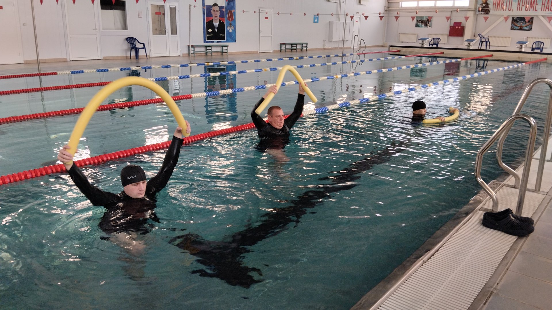 Ивановское отделение Фонда "Своих не бросаем", на базе ФОК, в бассейне, Ивановской 98-й Гвардейской воздушно-десантной дивизии, совместно со специалистом Ивановского РО ВОСВОД продолжают занятия по реабилитации наших ребят - героев, получивших ранения, в ходе специальной военной операции. Наши ребята-военные, после ранений, уже делают небольшие спортивные упражнения для растяжки мышц, укрепления рук и ног, позвоночника и для своего морального удовлетворения. Занятия проходят успешно, бойцы усердно занимаются в в бассейне, их мужеству, терпению и жизнелюбию можно только позавидовать. Занятия продолжаются, ребята получают удовлетворение и здоровье. Специалист Ивановского РО ВОСВОД - Сергей Скрипкин и врач неонатолог - Ольга Герасимова отдают все свои профессиональные знания и опыт нашим ребятам-бойцам для их полного выздоровления, бодрости духа и желания вернуться к полноценной жизни. Пресс служба ИРО ООО ВОСВОД 8(4932) 32-46-87.