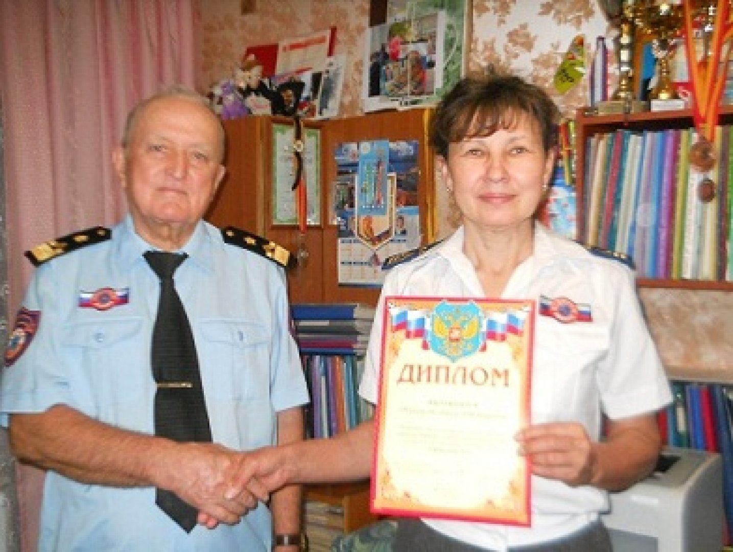 На снимке: Председатель ЧРО ВОСВОД вручил грамоту Васильевой Л.А. за активное участие на этих соревнованиях и за пропаганду правил безопасности в детских садиках г.Чебоксары.