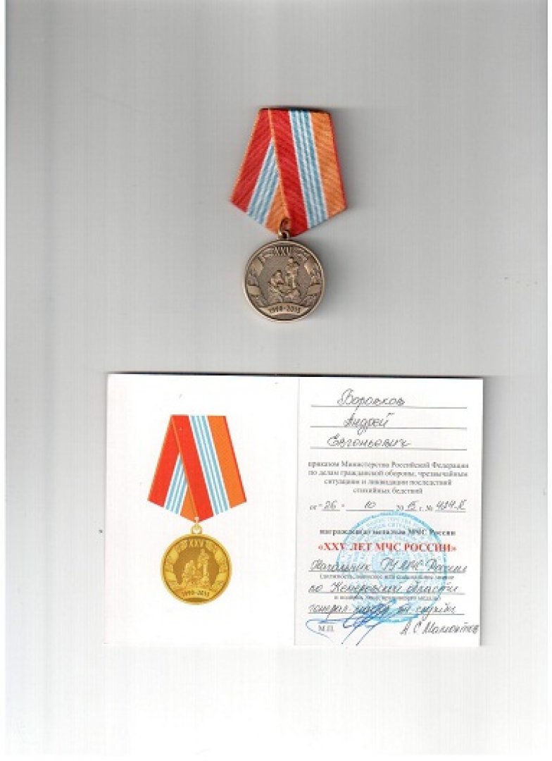 Начальник Главного управления МЧС России по Кемеровской области Александр Мамонтов наградил медалью «25 лет МЧС» водолаза Кемеровской областной организации ВОСВОД Андрея Боровкова.