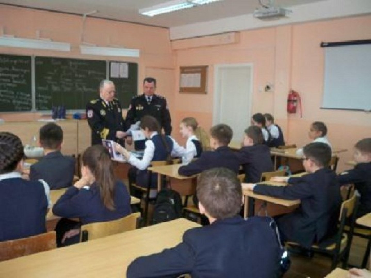 А для пятиклассников в этот день была организована встреча с государственным инспектором ВОСВОД, майором МЧС С. В.Аршиновым.