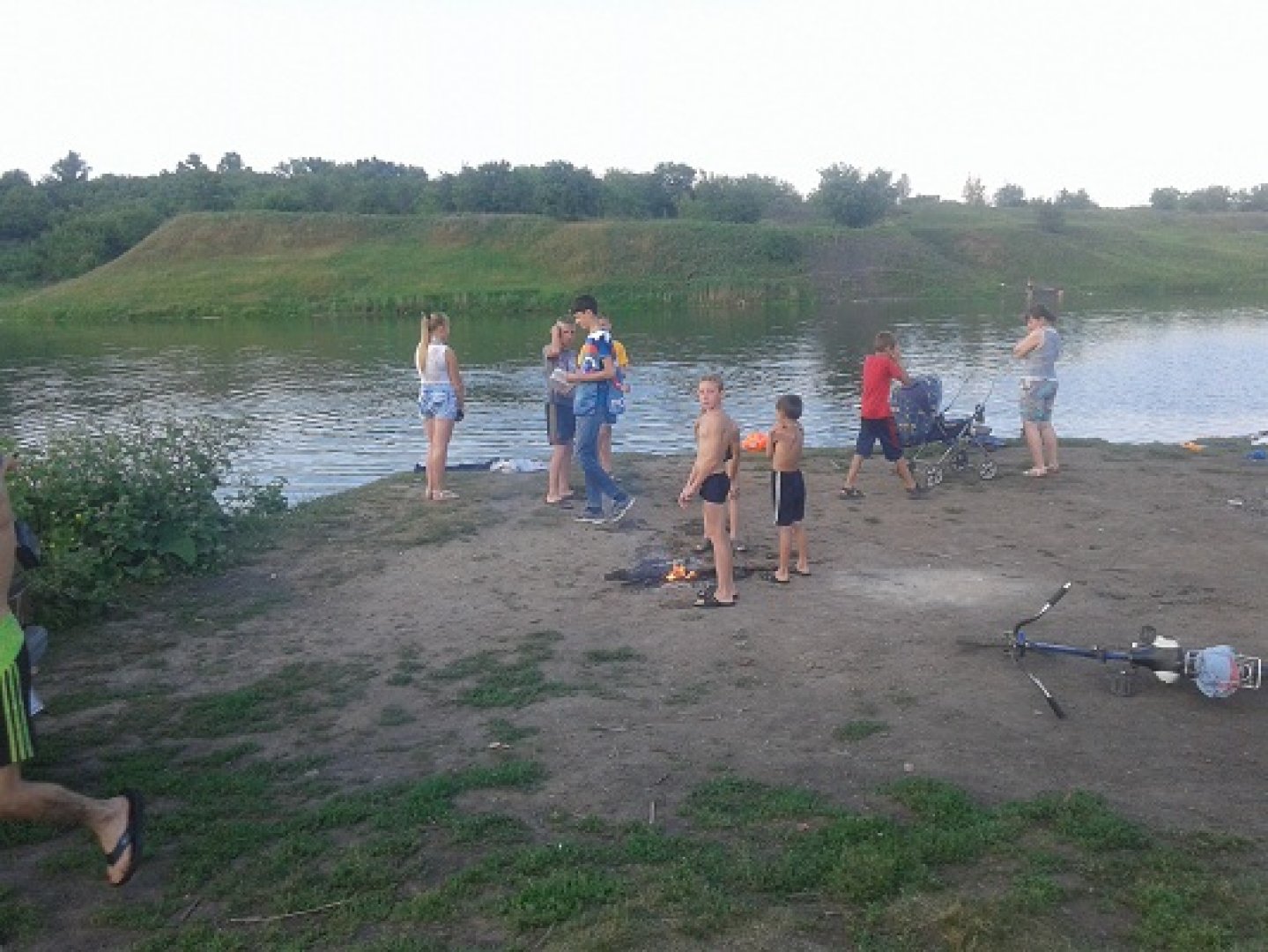 На пруду, у совхоза Комсомольский купались дети на самодельном плоту, а так же ныряли с него в воду. Всего было около 50 отдыхающих, в основном дети.