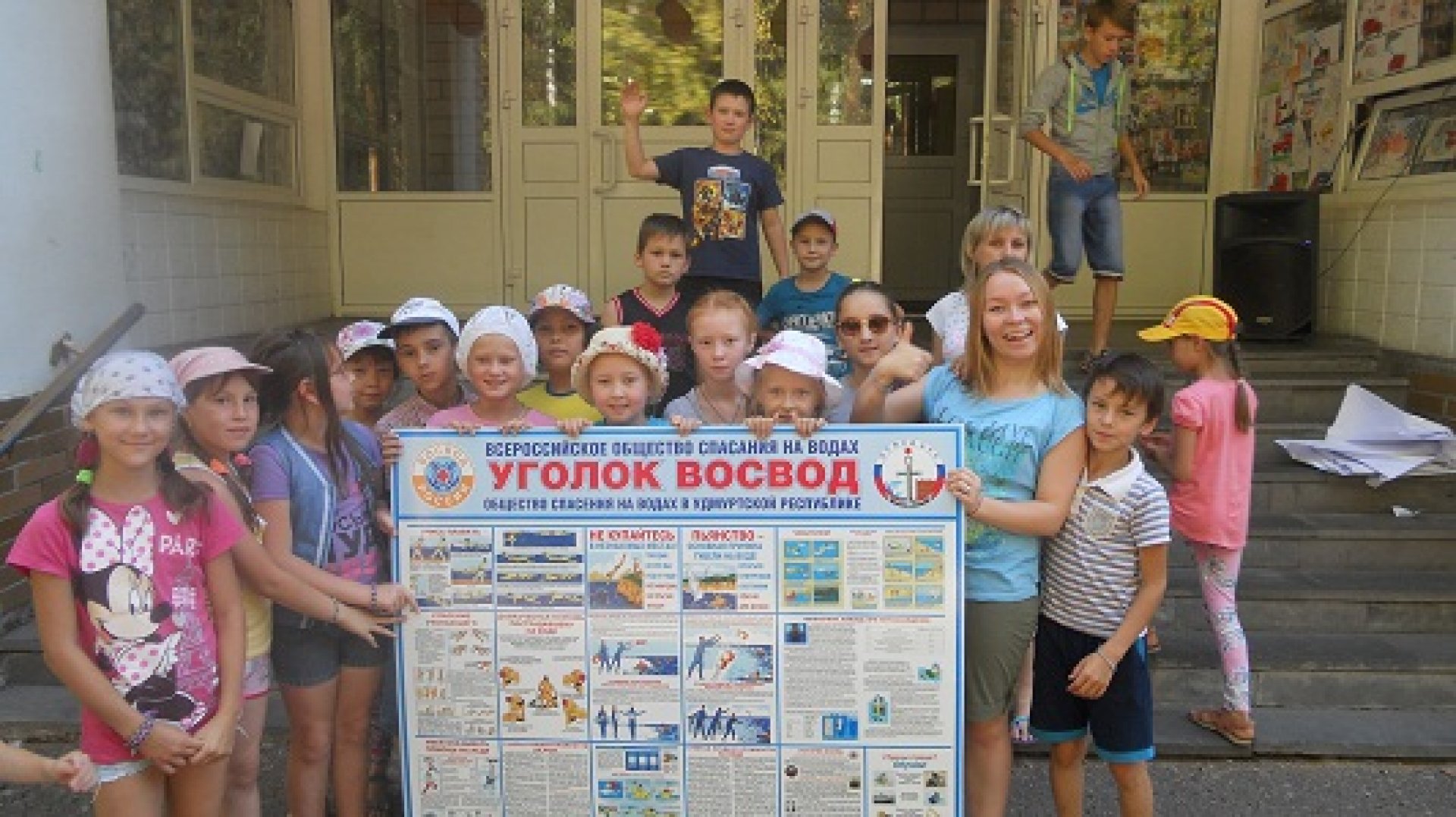 От ВОСВОД Удмуртии ЛОК «Заря» был передан стенд по безопасности на воде «Уголок ВОСВОД». На площадке по безопасности на водоемах ребятам рассказали причины утопления, меры безопасности, подарили магнитики с сюжетами мер безопасности, каждый смог попробовать кинуть спасательный круг и «конец Александрова», поучаствовать в водной эстафете на катамаранах.
