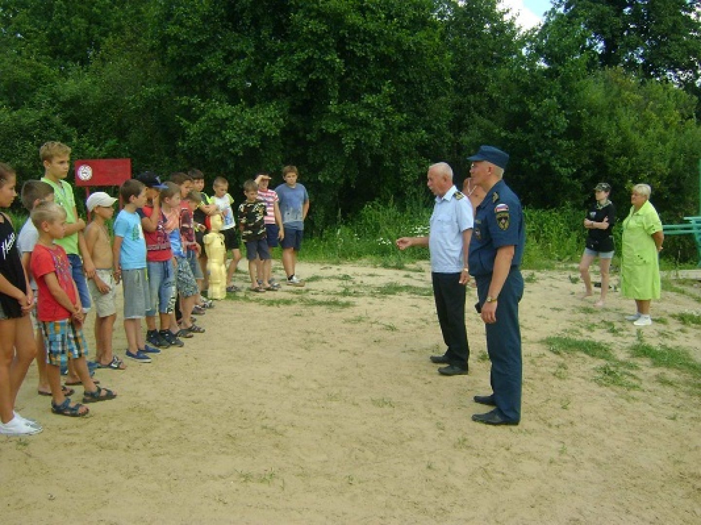Очередная такая поездка была организована 12 августа. В загородный детский оздоровительный лагерь «Орленок», расположенный в сосновом лесу, близ села Сабаево, Кочкуровского муниципального района, выехали сотрудники двух вышеназванных подразделений ГУ МЧС РФ по Республике Мордовия – Вячеслав Корнилов и Дмитрий Безроднов, а также Председатель ВОСВОДа Мордовии Валерий Евдокимов.
