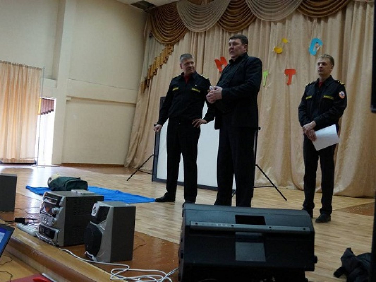 На снимке Председатель Красноярского краевого ВОСВОД А.В. Мельников, Директор Сосновоборского механико-технологического техникума А.В. Кривулин и лейтенант ВОСВОД Дмитрий Жуковец