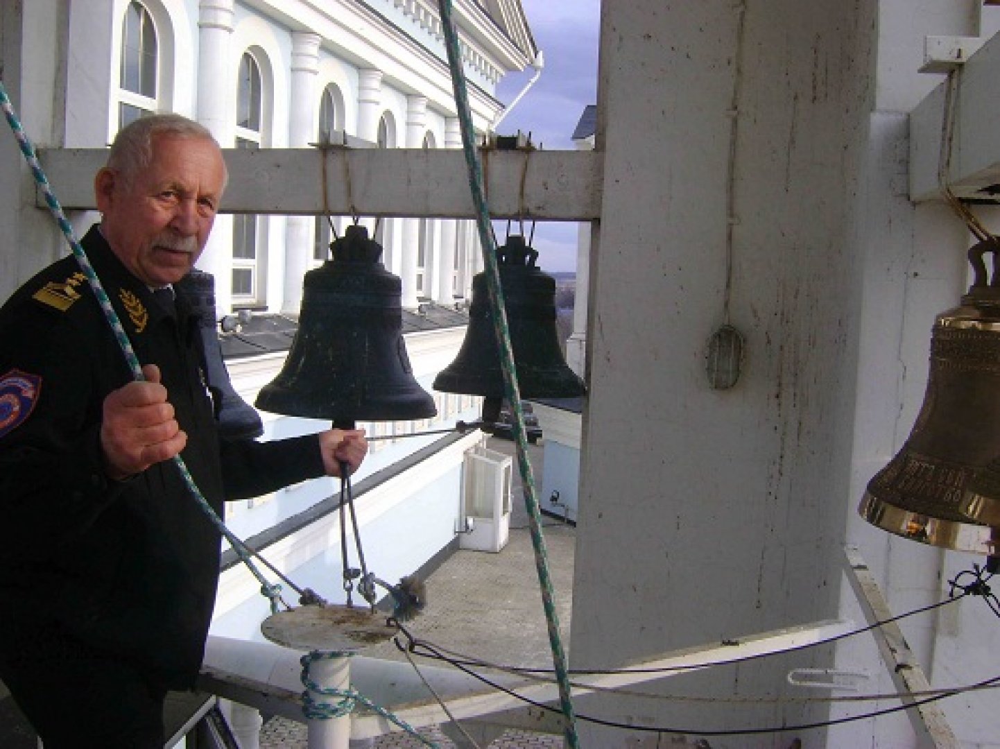 На фотографии: Евдокимов В.П. на колокольне храма.