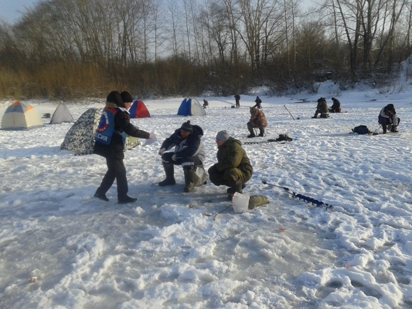 Восводовцы провели с рыбаками беседы, напомнили правила безопасности на льду и способы самоспасение и оказания помощи, раздавали листовки с правилами поведения на льду.