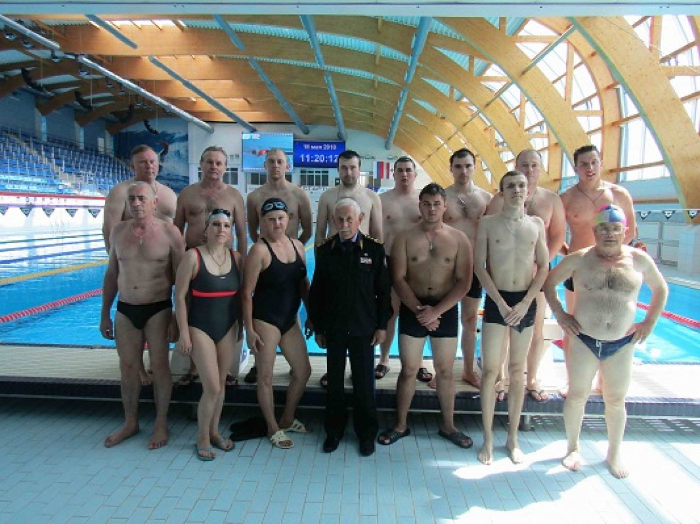 На фотографии (ИПС+МС-1): Евдокимов Валерий Павлович с группой «абитуриентов» в плавательном бассейне Дворца водных видов спорта в городе Саранске.