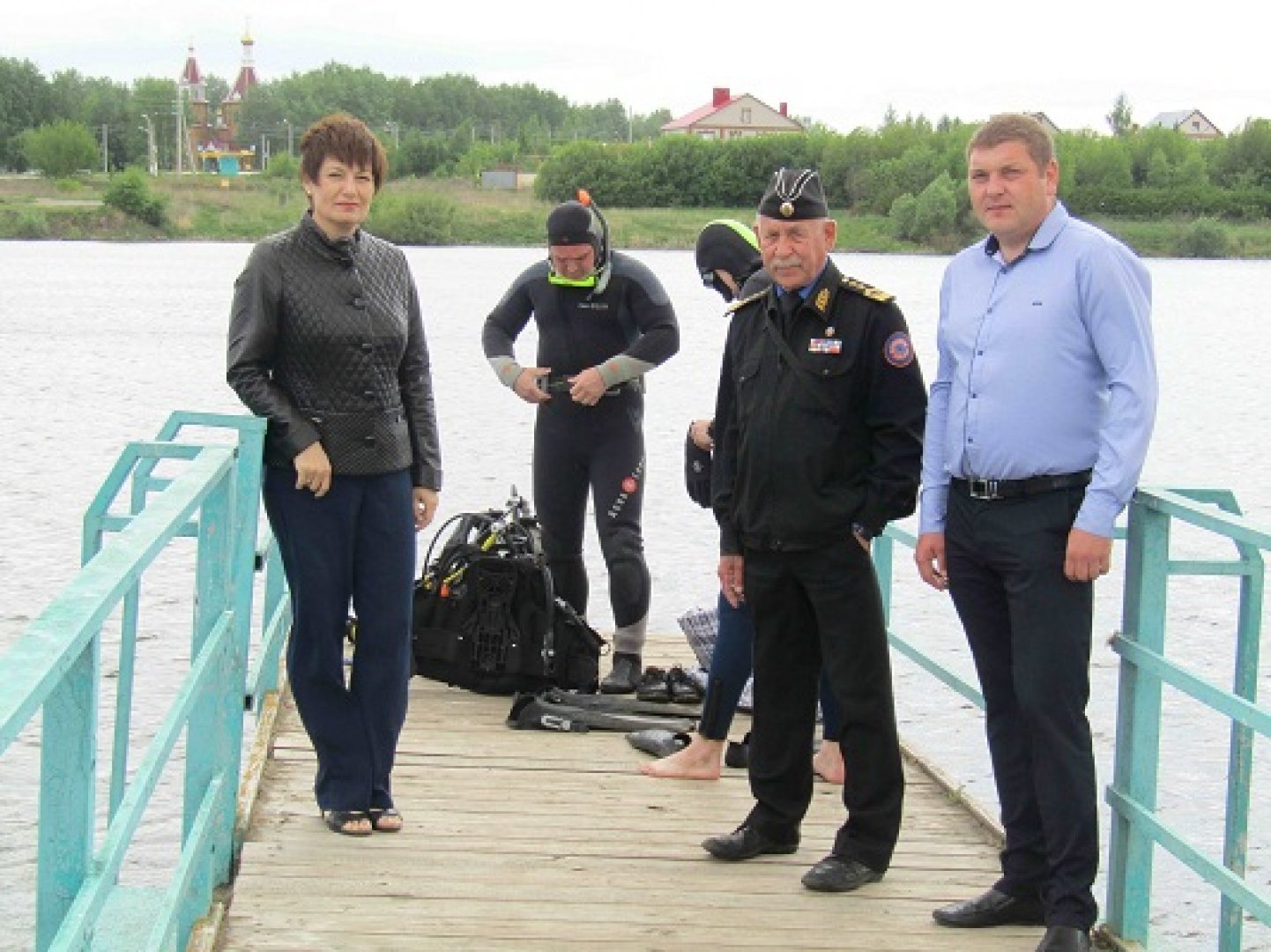 На фотографии («Луховка-2) Евдокимов Валерий Павлович с представителями «Заказчика» на самом крупном водоеме города – Луховском водохранилище, во время подготовки к проведению водолазных работ.