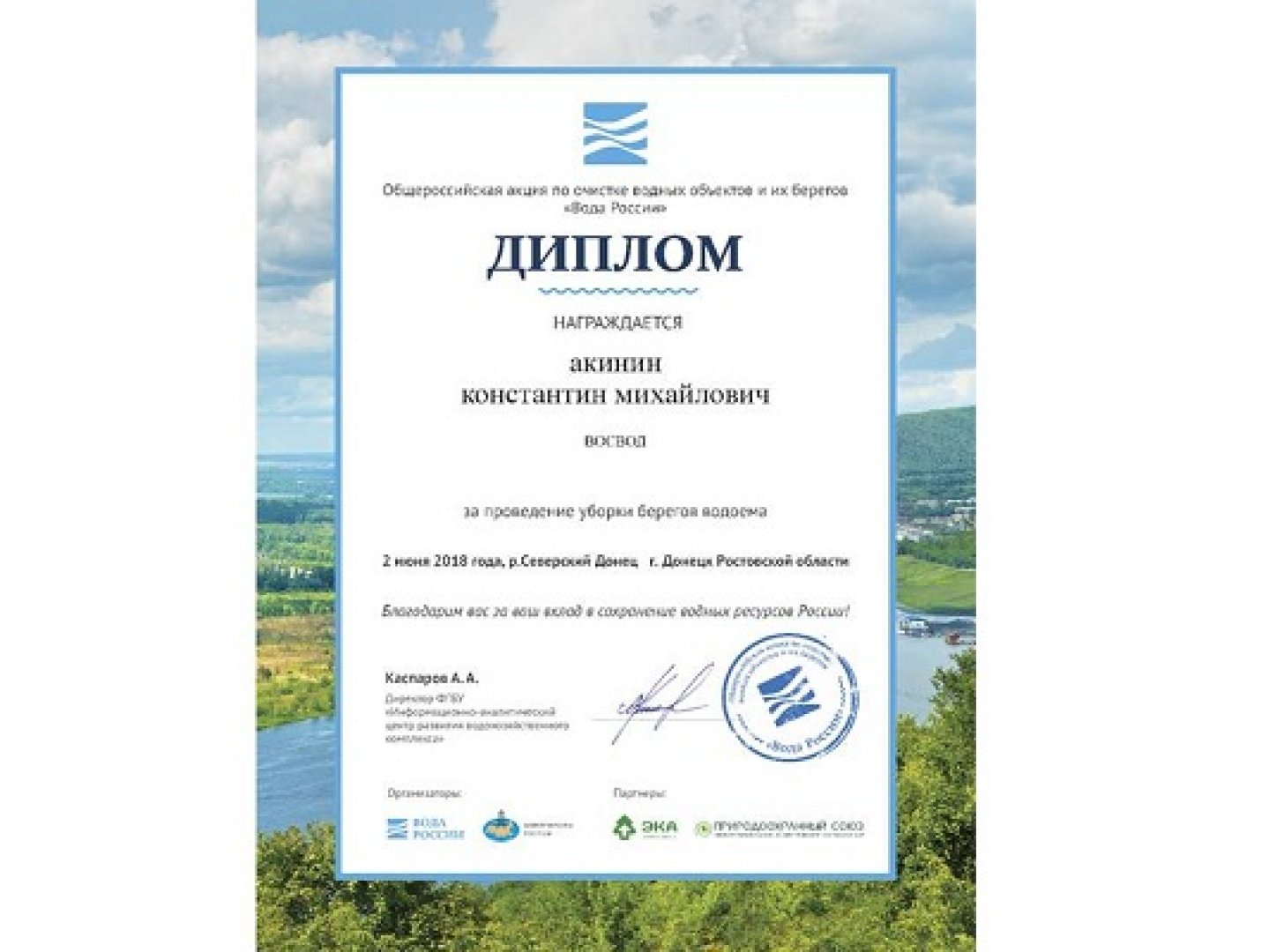 По итогам уборке был получен диплом