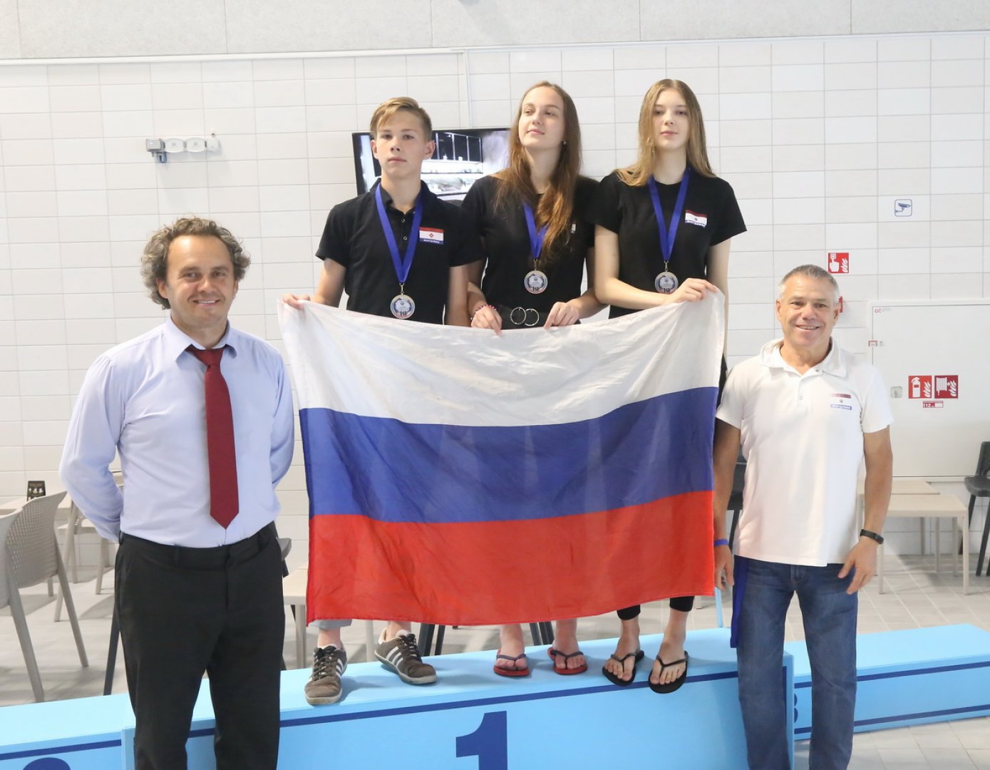 С 4 по 7 июля в городе Клайпеда (Литва) проходили очередные соревнования на Кубок Мира по акватлону (борьба в ластах под водой). Сборную команду Республики Мордовия представляли воспитанники отделения подводного спорта спортивной школы «Старт» г. Саранска Акмаева Ксения, Арбузов Роман и Бацунова Ирина. Все трое стали победителями соревнований в своих возрастных категориях. На фотографии: спортсмены Республики Мордовия, во главе с тренером – одним из самых активных и старейших членов Мордовского республиканского Совета Всероссийского общества спасания на водах (ВОСВОД) Потаповым Игорем Борисовичем (справа) на пьедестале почета, с флагом Российской Федерации. Поздравляем с очередной победой мирового уровня! Пресс-служба Мордовского регионального отделения ВОСВОД