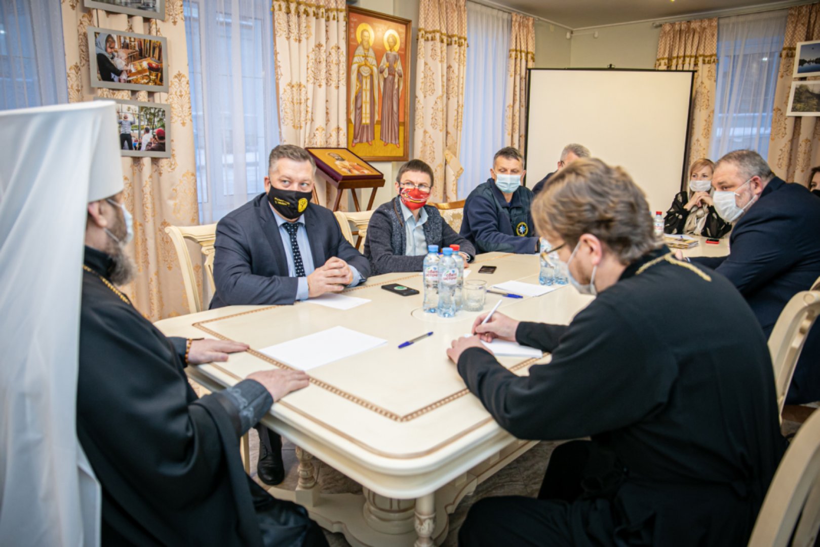 15 декабря в Ижевском епархиальном управлении прошло совещание, посвященное организации общегородского крестного хода по случаю праздника Крещения Господня в 2021 году. В совещании приняли участие митрополит Ижевский и Удмуртский Викторин, благочинный Ижевского округа протоиерей Роман Воскресенских, председатель епархиальной комиссии по вопросам семьи, защиты материнства и детства Анна Воскресенских, председатель ЦС РОО «Общество спасения на водах в Удмуртской Республике» Владимир Черников, заместитель Главы Администрации МО «Город Ижевск» по социальной политике Дмитрий Чистяков, начальник Управления по физической культуре, спорту и молодежной политике Администрации города Ижевска Константин Васильев, начальник МБУ «Поисково-спасательная служба г. Ижевска» Андрей Иванов, н.о.начальника Управления гражданской защиты города Ижевска Сергей Шастин и представитель УК «Парки Ижевска» Екатерина Симонова. Участники рабочей встречи обсудили вопросы организации крестного хода, обустройства купели, обеспечения безопасности, культурно-массовых мероприятий, посвященных празднику Крещения Господня и ряд других рабочих вопросов. Вечером в этот же день участники совещания встретились непосредственно на месте для уточнения. Пресс-служба РОО "ОСВОД в УР" Фото Пресс-служба Ижевской епархии