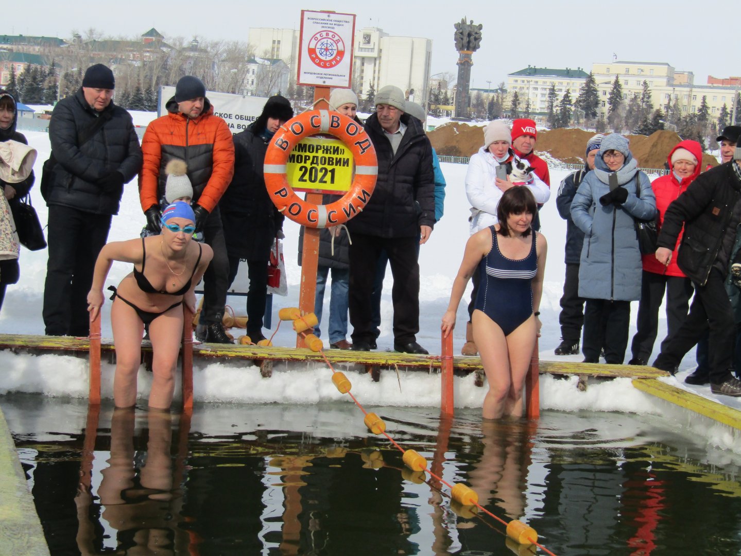 7 марта 2021 года, в преддверии Международного женского Дня 8-е марта, на водоеме у стадиона «Старт» состоялись традиционные, двадцатые по счету соревнования «Моржей» республики в «ледяном бассейне», посвященные этой дате, а также очередной 51-й годовщине возрождения организации ОСВОДа России в нашей республике (23 февраля 1970 года, тогда – Мордовской АССР). 52 человека, мужского и женского пола, начиная со школьников, и заканчивая ветеранами, которым далеко за 70 лет, приняли участие в данных соревнованиях! Перед началом соревнований, на параде открытия Начальник отдела надзорно-профилактической деятельности Центра ГИМС ГУ МЧС РФ по Республике Мордовия Романов Александр Викторович поздравил женщин – «Моржих» с Днем 8-е марта, а Председателя Мордовского регионального отделения ОСВОДа России, исполнительного директора Федерации закаливания и спортивного зимнего плавания Республики Мордовия, Главного судью данных соревнований Евдокимова Валерия Павловича с очередной, 51-й годовщиной ОСВОДа Мордовии, а также с 73-летием со Дня его рождения, которое Валерий Павлович отметил несколько дней назад, и вручил ему «Благодарственное письмо» от имени Начальника ГУ МЧС РФ по Республике Мордовия генерал-майора внутренней службы Наумова Андрея Геннадьевича. Евдокимов В.П. также поздравил «Моржих» с праздником, и соревнования начались! В процессе соревнований Валерий Павлович, а также несколько «Моржей» и «Моржих» дали интервью двум каналам телевидения: «Россия» и «Народное телевидение Мордовии». Соревнования, как и всегда, завершились награждением победителей и призеров соревнований, которое прошло в пресс-центре Административного здания стадиона «Старт». Но об этом – в следующей информации. На фотографии: Романов А.В. вручает Евдокимову В.П. «Благодарственное письмо» от ГУ МЧС РФ по Республике Мордовия. Фото для фотогалереи: 1. Интервью Евдокимова В.П. телеканалу «Россия». 2. На старте – братья Каргины – мастер спорта Василий и его брат – Михаил. 3. На старте – женщины Ольга Тельнова и Майя Сидорова. 4. Молодые «Моржата». 5. Девочки – «Моржихи» 6. Очередной заплыв. 7. Секретари соревнований: Кудрявцева Рушана и Гущина Даша. Пресс-служба Мордовского регионального отделения ОСВОДа