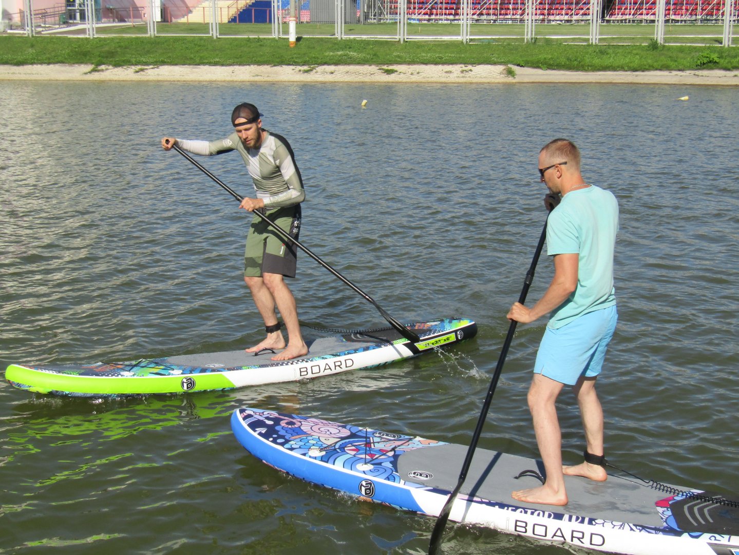 Посетители пляжа и водоема у стадиона «Старт» в г. Саранске смогли наблюдать необычную картину: несколько молодых людей преодолевали водное пространство, стоя на широких разноцветных «досках», управляя ими с помощью весла! Новый вид спорта –сапсерфинг «дошел» и до наших краев! В этом водном виде спорта серфер стоит на доске, перемещаясь по воде с помощью весла. Доски для сапсерфинга практически ничем не отличаются от досок для классического серфинга. Они только на много шире и длиннее. За счет этого удерживать равновесие спортсмену намного проще. Теперь на водоеме, кроме гребных и парусных лодок, можно будет наблюдать и эти плавательные средства. Этот вид спорта зародился, как серфинг с веслом, на Гавайских островах. Впервые его описали европейцы в 1778 году. К этому времени аборигены уже регулярно выходили в море на деревянных досках, используя весла для гребли. Правда, это был не вид спорта, такие выходы в море использовали в практических целях. На фотографии: тренировочные занятия сапсерферов на водоеме у стадиона «Старт» в г. Саранске. Пресс-служба Мордовского регионального отделения ВОСВОД